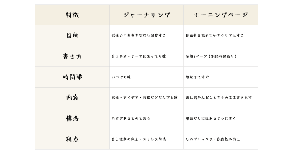 ジャーナリングとモーニングページの違い