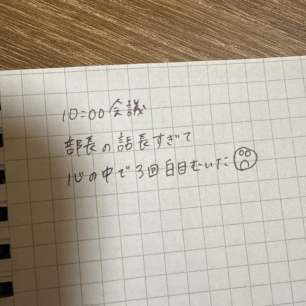 • ◯10:00会議。部長の話が長すぎて、心の中で3回白目剥いた。