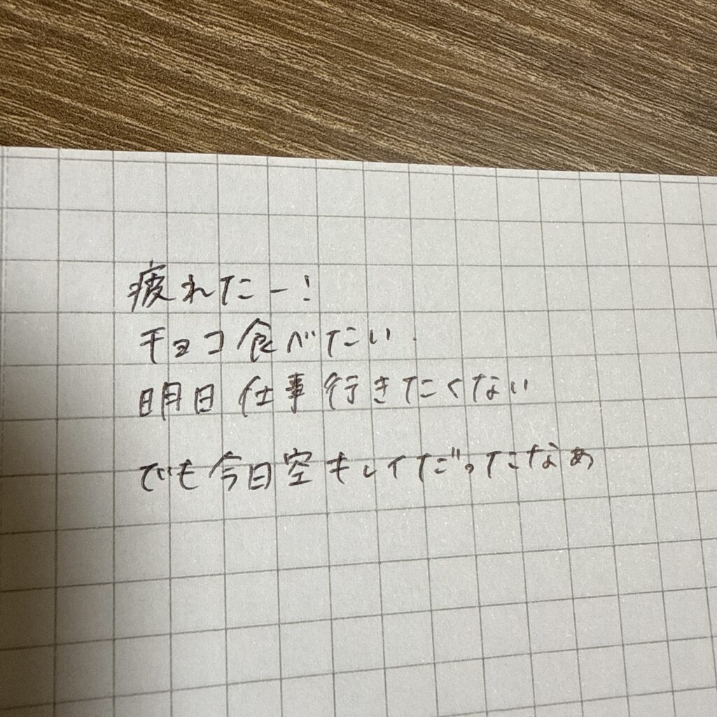 ライフログというと「10時:会議」「18時:夕飯」と行動を書きたくなりますが、デトックスが目的なら行動は書かなくてもいいです。