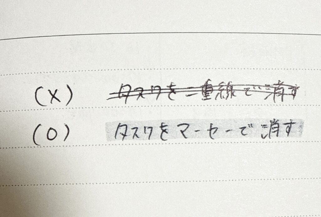 赤ペンで二重線を引いたり、塗りつぶしたりしていませんか?